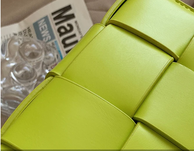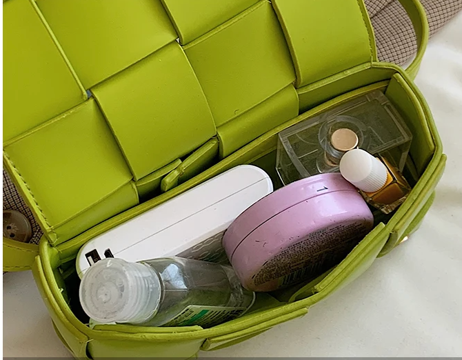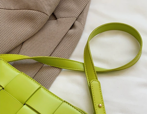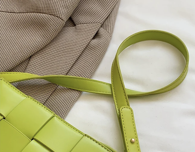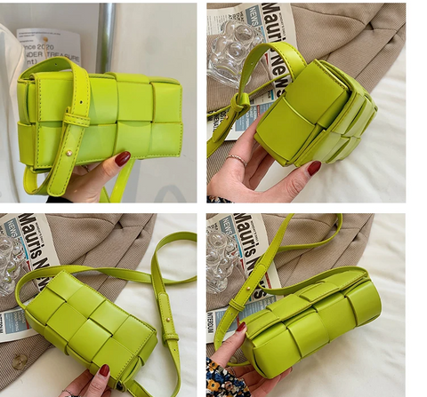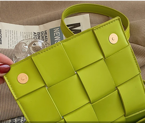 Weaved waffle cross layers make this very sturdy bag. Two snap closures, Adjustable crossbody straps which are removable and use as a clutch.