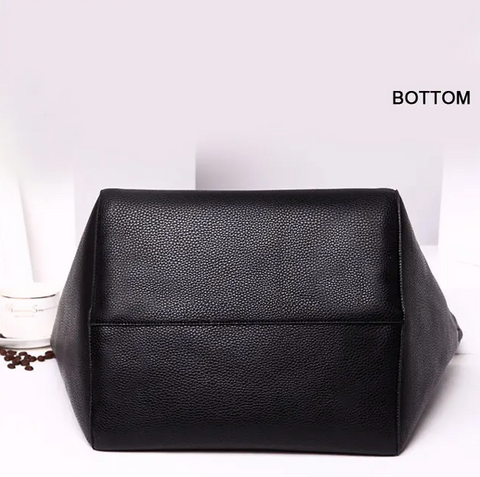 THIS IS A GORGEOUS Quality Leather tote. Sturdy handles and gold hardware, additIonal mini zip bag, flat bottom, love the interior deep color! STURDY handle straps and also crossbody strap.