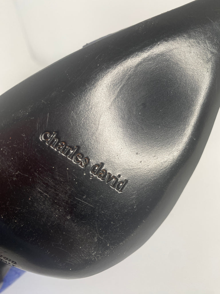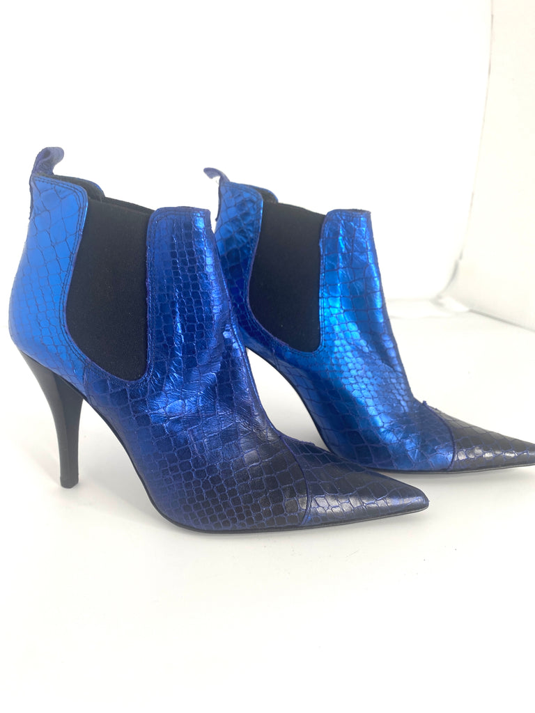 So cool! Iridescent leather Beetle Boots by Charles DavidIn wonderful flawless condition. 4" skinny heel, sturdy black side stretch panel. Dramatic pointed toe.