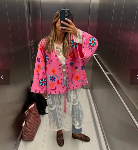 . Embroidered Print Design Featuring a chic embroidered print, this jacket adds a touch of elegance to any outfit.