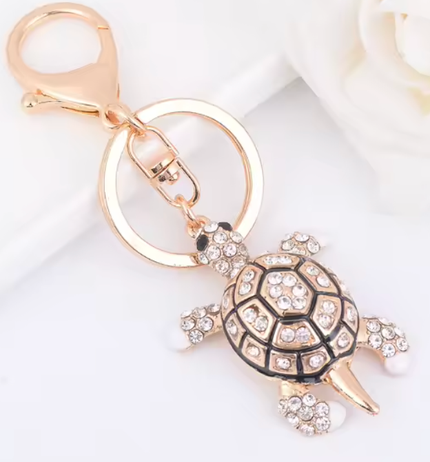 Black and white rhinestone turtle with very sturdy clasps for a perfect purse charm!