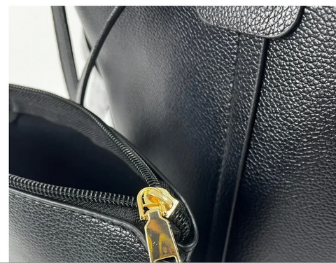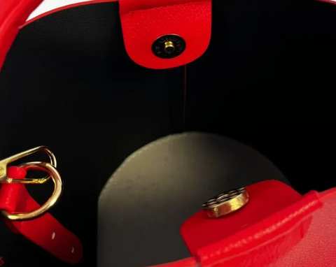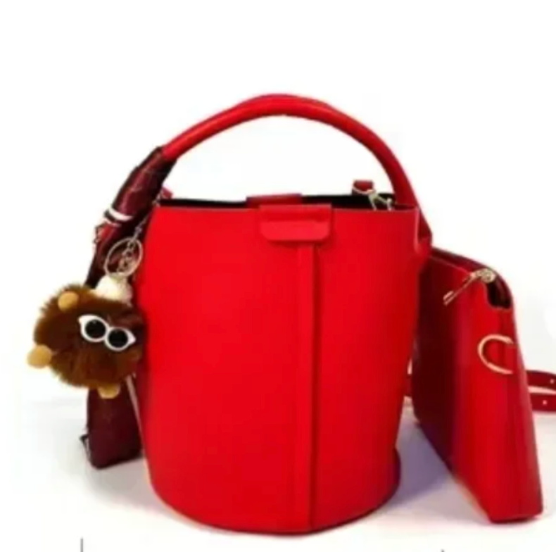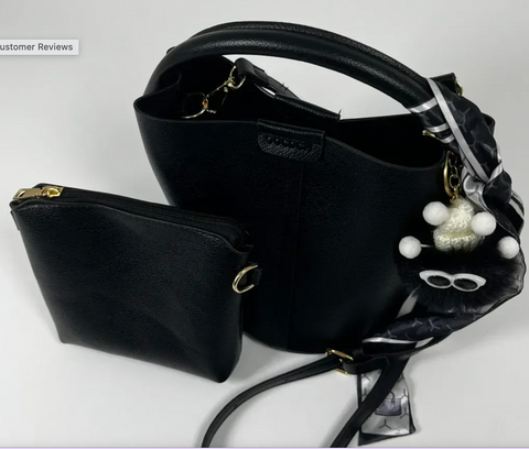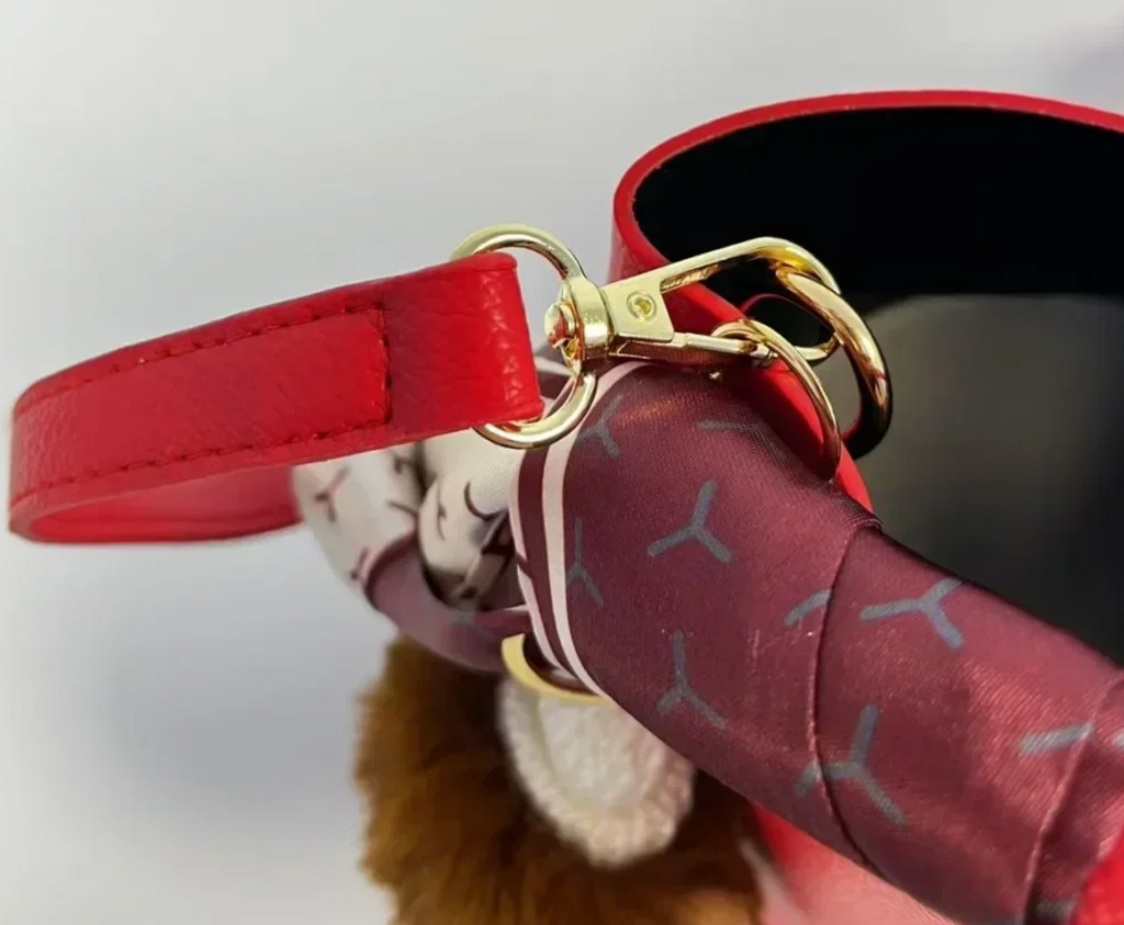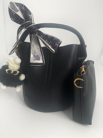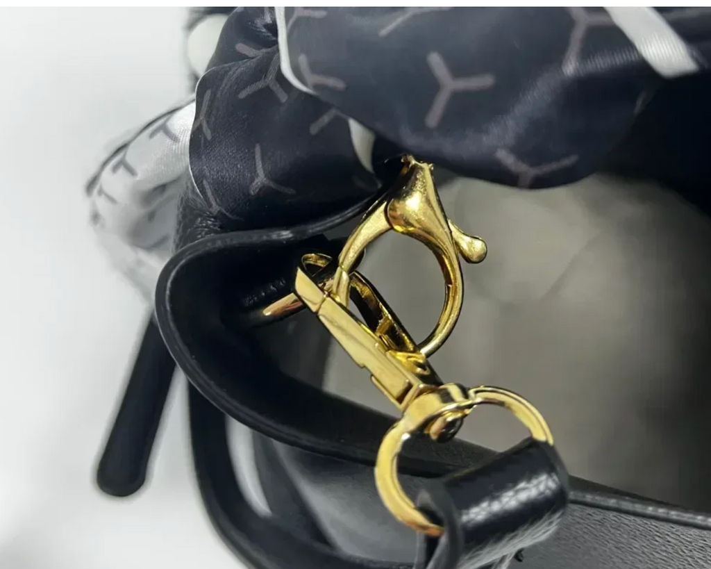 Super Sassy! Textured leather, sturdy gold hardware and handle,shoulder strap, small cosmetic bag included...scarf and CHARM included.