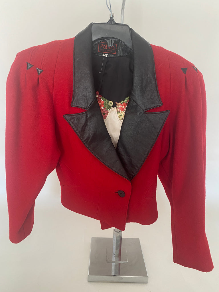 RED PADDED SHOULDER CROPPED BLAZER 80s