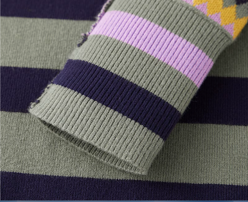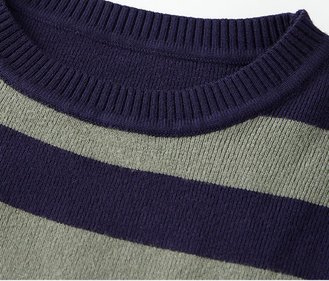 Womens Stripes Print Knit Tops Contrast Long Sleeve Crew Neck Slim Fit Shirts Spring Fall Blouses