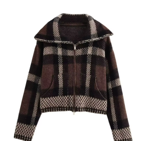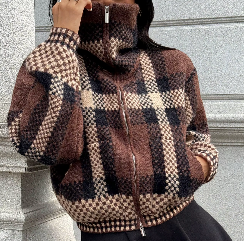 LOVE THIS JACKET! EXTREMELY SOFT and super comfortable. Banded wrists and waist, sturdy double zippersmo0lr, chocolate, black ,cream plaid color palette.