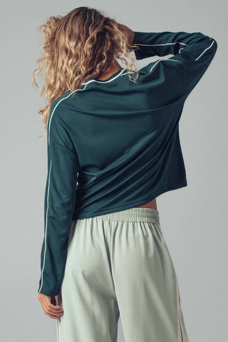 Channel retro athletic style with this lightweight jersey top featuring a bold "07" front graphic and sporty striped trim. Designed for everyday comfort with a laid-back, collegiate vibe—perfect with joggers, jeans or leggings...