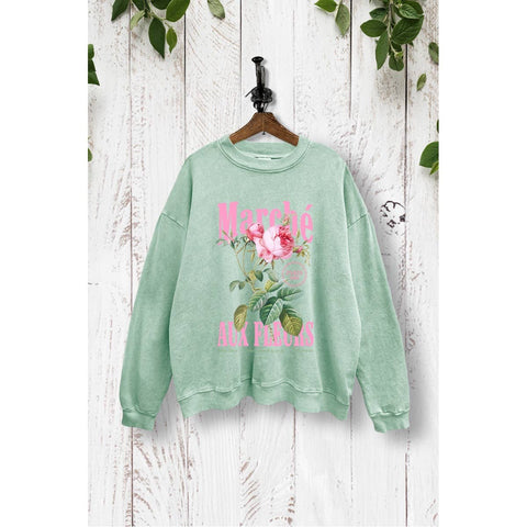 FRENCH TERRY FABRIC - VINTAGE AESTHETIC - SOFT FEEL ON SKIN - SWEATSHIRT - MINERAL WASHED & GARMENT DYED - LONG SLEEVES - CREW NECK - SCREEN PRINT - 100% COTTON