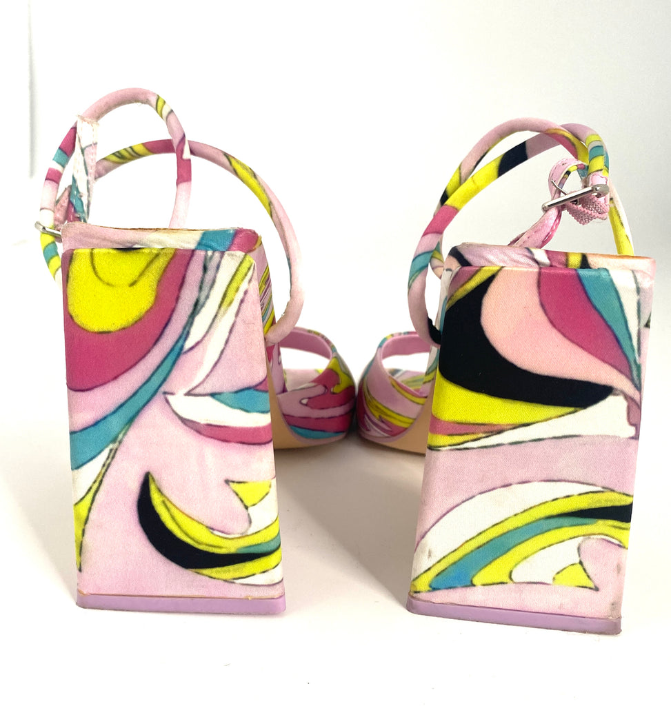 THE COOLEST heel!!! COLORUFL Pucci style grahic design.